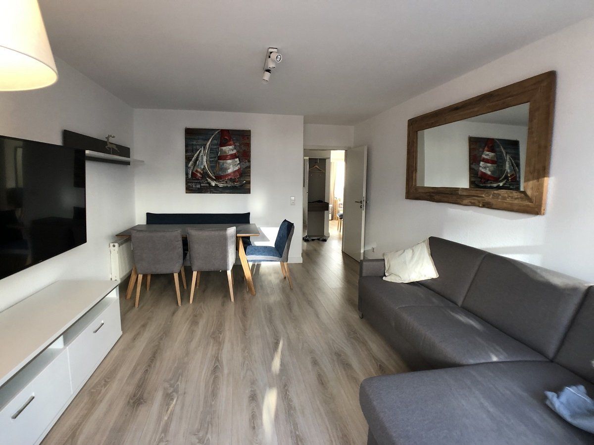 Die Ferienwohnung im Haus Concordia im Erdgeschoss mit einem kleinen Aussenbereich.